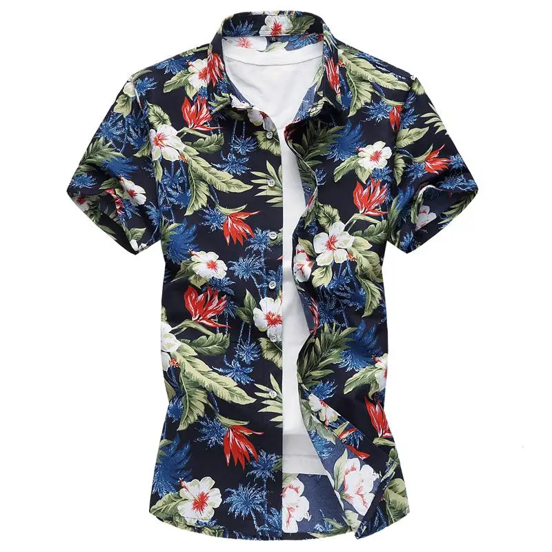 Flower Male Shirt Dress Floral Hawaiian Shirt Men Short-sleeved Blouse Men's Clothing