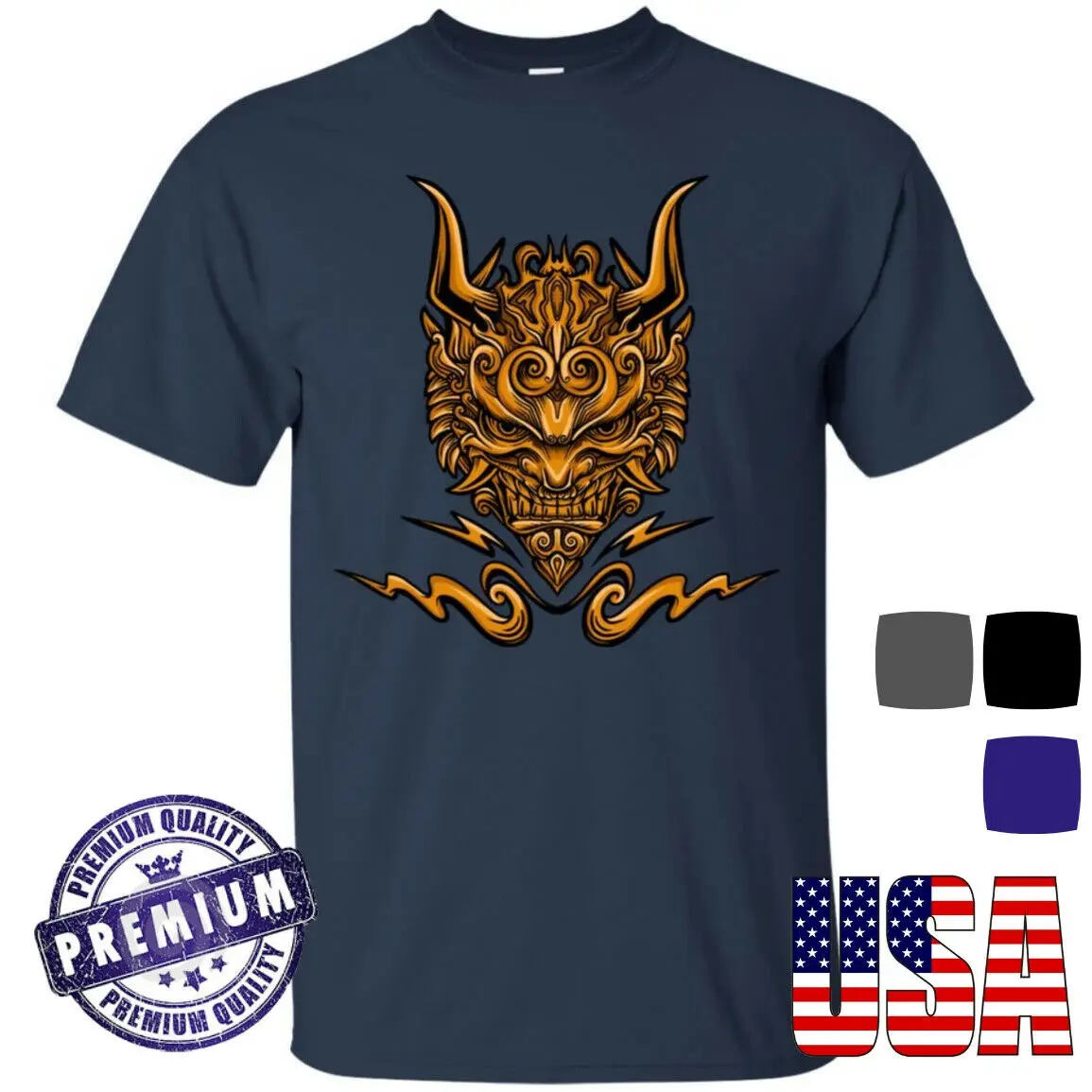 REVIEW TOP SELLER Samurai Mask Mens T Shirt Guys Punk Gold Devil Japan Yakuza Ronin Clothing tee