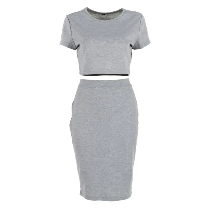 BEST Lady Solid Bodycon Midi Dress Short Top +Dress Set Party Vestidos Short Sleeve Two Pcs Outfits Cost