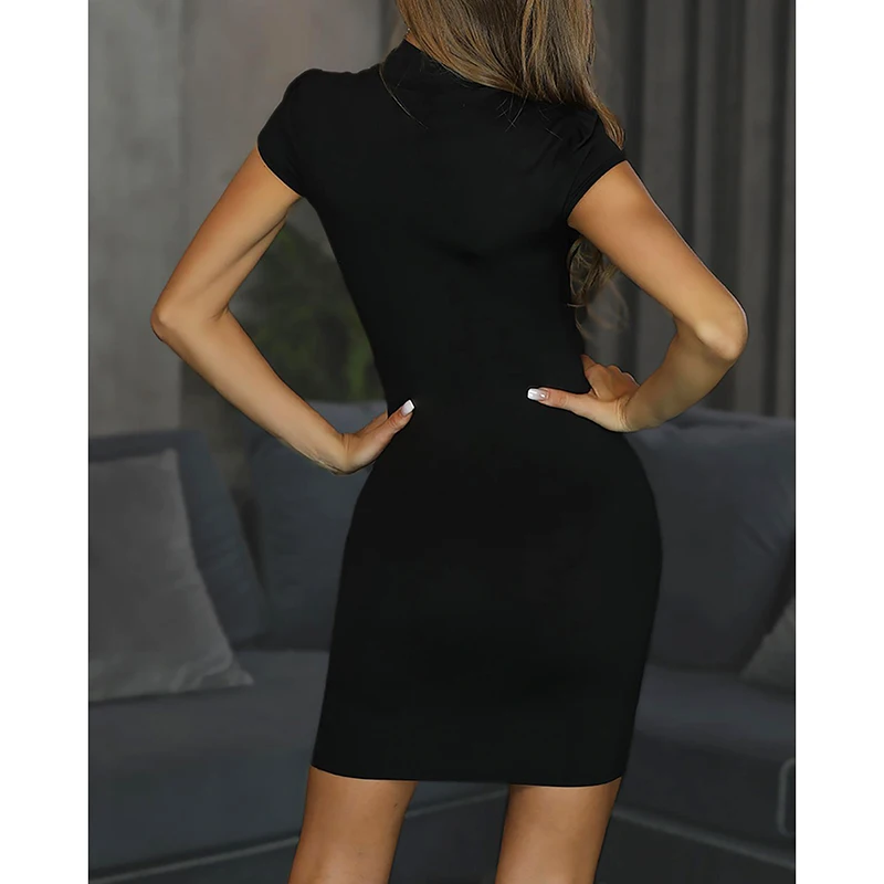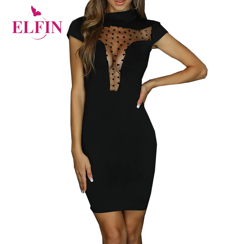 Mesh Perspective Short Sleeve Women Dress Black Slim Fit Bodycon Party Dresses Club Elegant Vestido